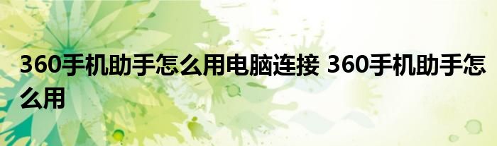 大家好,小琪來為大家解答以上問題。360手機助手怎么用電腦連接,360手機助手怎么用這個很多人還不知道,現在讓我們一起來看看吧!
