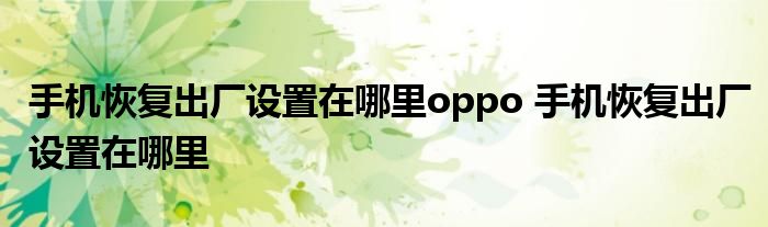 大家好,小琪來為大家解答以上問題。手機恢復出廠設置在哪里oppo,手機恢復出廠設置在哪里這個很多人還不知道,現在讓我們一起來看看吧!