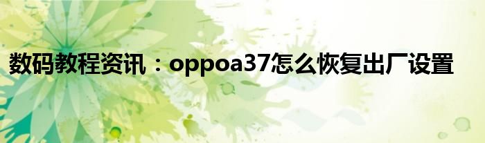 現(xiàn)在各種各樣的數(shù)碼設備在我們的生活當中幾乎可以說是無處不在,平時我們使用的手機,IP,電腦等等這些都屬于數(shù)碼設備,那么這些數(shù)碼設備當中會存在著很多的功能,當然在我們使用的過程當中自然也會出現(xiàn)說各種的問題,那么我們如何才能去解決這些問題以及使用好這些功能呢?這個時候就需要我們去了解這些功能及問題的解決方法,今天小編就來給大家分享下,關于oppoa37怎么恢復出廠設置方面的問題及功能的詳細內容,希望下面小編為大家分享的內容對大家來說有一定的幫助哦。oppoa37怎么恢復出廠設置?