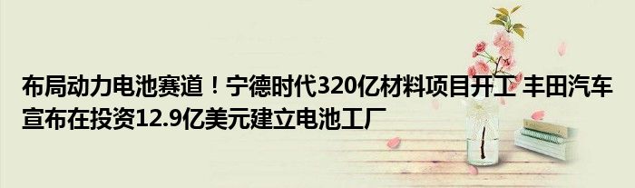 早在10月份,豐田宣布電動汽車投資約 34 億美元,豐田工廠的部分資金來自這部分投資。該公司預計新工廠將完全由可再生能源供電來生產電池。豐田已承諾到 2050 年實現其車輛和運營的碳中和。本文資料來自寧德時代微信和CNBC網站,本文整理發布。