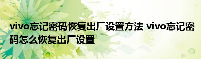 大家好,小琪來(lái)為大家解答以上問題。vivo忘記密碼恢復(fù)出廠設(shè)置方法,vivo忘記密碼怎么恢復(fù)出廠設(shè)置這個(gè)很多人還不知道,現(xiàn)在讓我們一起來(lái)看看吧!