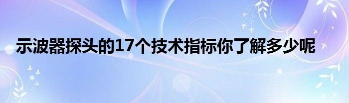 大家好,小科來為大家解答以上問題。示波器探頭的17個技術指標你了解多少呢這個很多人還不知道,現在讓我們一起來看看吧!