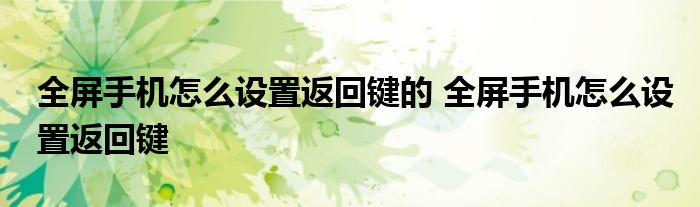 大家好,小琪來為大家解答以上問題。全屏手機(jī)怎么設(shè)置返回鍵的,全屏手機(jī)怎么設(shè)置返回鍵這個(gè)很多人還不知道,現(xiàn)在讓我們一起來看看吧!