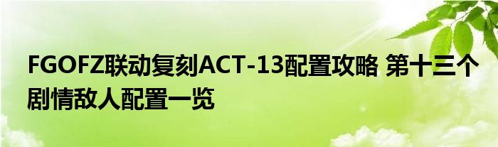 以上就是關于FGO第十三個劇情敵人配置一覽,小伙伴們學會了嗎?希望以上攻略能給玩家們帶來一定的幫助,關于更多FGO攻略請關注當游網。