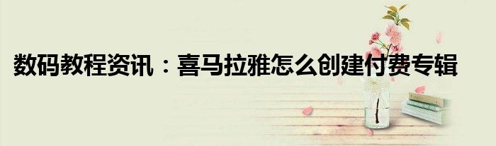 現(xiàn)在各種各樣的數(shù)碼設(shè)備在我們的生活當(dāng)中幾乎可以說是無處不在,平時我們使用的手機(jī),IP,電腦等等這些都屬于數(shù)碼設(shè)備,那么這些數(shù)碼設(shè)備當(dāng)中會存在著很多的功能,當(dāng)然在我們使用的過程當(dāng)中自然也會出現(xiàn)說各種的問題,那么我們?nèi)绾尾拍苋ソ鉀Q這些問題以及使用好這些功能呢?這個時候就需要我們?nèi)チ私膺@些功能及問題的解決方法,今天小編就來給大家分享下,關(guān)于喜馬拉雅怎么創(chuàng)建付費專輯方面的問題及功能的詳細(xì)內(nèi)容,希望下面小編為大家分享的內(nèi)容對大家來說有一定的幫助哦。喜馬拉雅怎么創(chuàng)建付費專輯?