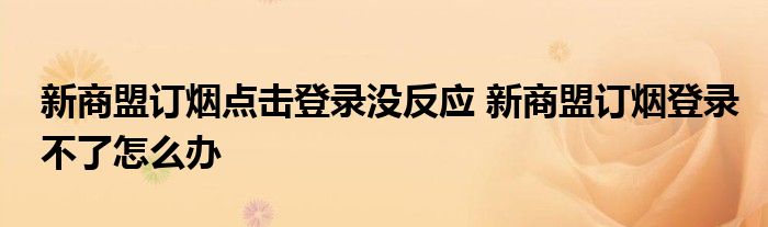 大家好,小琪來為大家解答以上問題。新商盟訂煙點(diǎn)擊登錄沒反應(yīng),新商盟訂煙登錄不了怎么辦這個(gè)很多人還不知道,現(xiàn)在讓我們一起來看看吧!