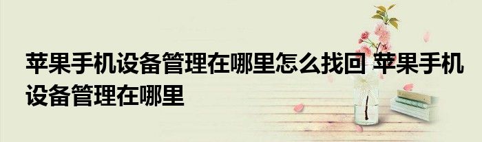 大家好,小琪來為大家解答以上問題。蘋果手機設備管理在哪里怎么找回,蘋果手機設備管理在哪里這個很多人還不知道,現在讓我們一起來看看吧!