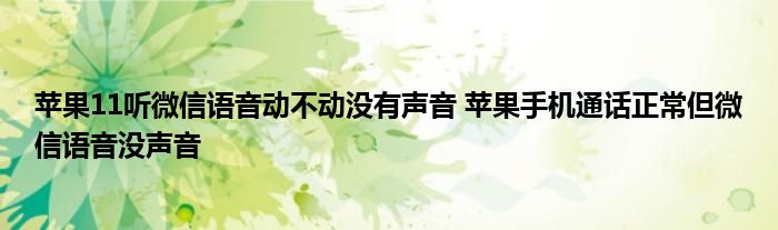 大家好,小琪來為大家解答以上問題。蘋果11聽微信語音動不動沒有聲音,蘋果手機通話正常但微信語音沒聲音這個很多人還不知道,現在讓我們一起來看看吧!