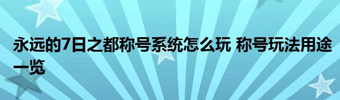 以上就是永遠的7日之都稱號系統怎么玩的全部內容,不知道各位親愛的小伙伴是否掌握了呢?希望能提供些幫助!如果還有其他疑問,歡迎訪問當游網的相關文章。