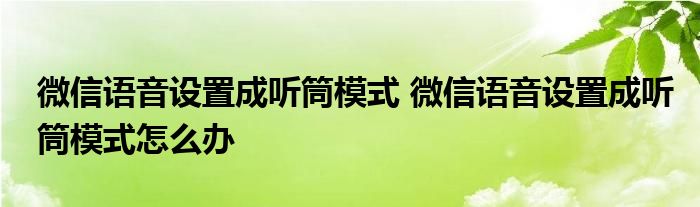大家好,小琪來為大家解答以上問題。微信語音設置成聽筒模式,微信語音設置成聽筒模式怎么辦這個很多人還不知道,現在讓我們一起來看看吧!