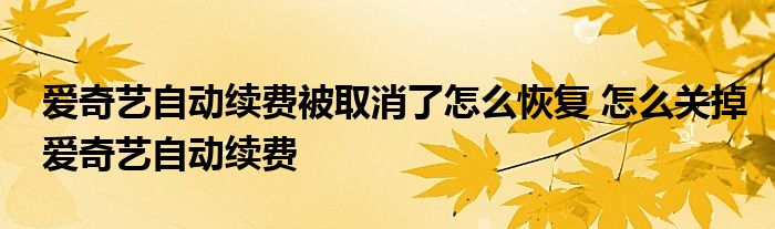 大家好,小琪來為大家解答以上問題。愛奇藝自動續費被取消了怎么恢復,怎么關掉愛奇藝自動續費這個很多人還不知道,現在讓我們一起來看看吧!