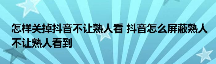大家好,小琪來為大家解答以上問題。怎樣關掉抖音不讓熟人看,抖音怎么屏蔽熟人不讓熟人看到這個很多人還不知道,現在讓我們一起來看看吧!
