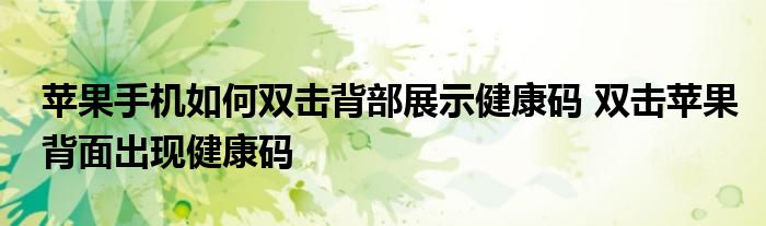 大家好,小琪來為大家解答以上問題。蘋果手機(jī)如何雙擊背部展示健康碼,雙擊蘋果背面出現(xiàn)健康碼這個(gè)很多人還不知道,現(xiàn)在讓我們一起來看看吧!
