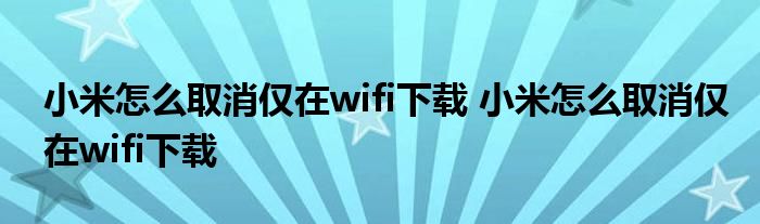 大家好,小琪來為大家解答以上問題。小米怎么取消僅在wifi下載,小米怎么取消僅在wifi下載這個很多人還不知道,現在讓我們一起來看看吧!
