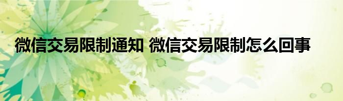 大家好,小琪來為大家解答以上問題。微信交易限制通知,微信交易限制怎么回事這個很多人還不知道,現在讓我們一起來看看吧!