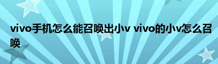 大家好,小琪來為大家解答以上問題。vivo手機怎么能召喚出小v,vivo的小v怎么召喚這個很多人還不知道,現在讓我們一起來看看吧!
