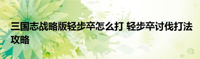 在三國志戰(zhàn)略版手游中輕步卒的裝備雖然算不上精良,但它的強度也是不容忽視的,那么三國志戰(zhàn)略版輕步卒怎么打呢,下面就來看看詳細的打法攻略。