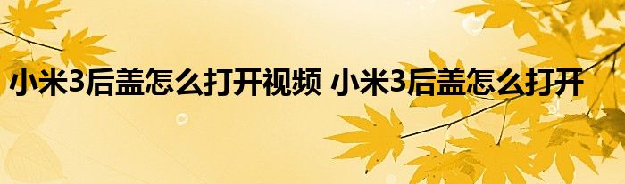大家好,小琪來為大家解答以上問題。小米3后蓋怎么打開視頻,小米3后蓋怎么打開這個很多人還不知道,現(xiàn)在讓我們一起來看看吧!