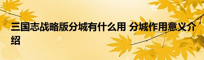 以上就是三國志戰略版分城的作用意義介紹了,希望對大家有所幫助,更多游戲相關的內容,請持續關注當游網。