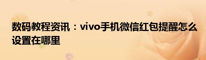 現在各種各樣的數碼設備在我們的生活當中幾乎可以說是無處不在,平時我們使用的手機,IP,電腦等等這些都屬于數碼設備,那么這些數碼設備當中會存在著很多的功能,當然在我們使用的過程當中自然也會出現說各種的問題,那么我們如何才能去解決這些問題以及使用好這些功能呢?這個時候就需要我們去了解這些功能及問題的解決方法,今天小編就來給大家分享下,關于vivo手機微信紅包提醒怎么設置在哪里方面的問題及功能的詳細內容,希望下面小編為大家分享的內容對大家來說有一定的幫助哦。vivo手機微信紅包提醒怎么設置在哪里?