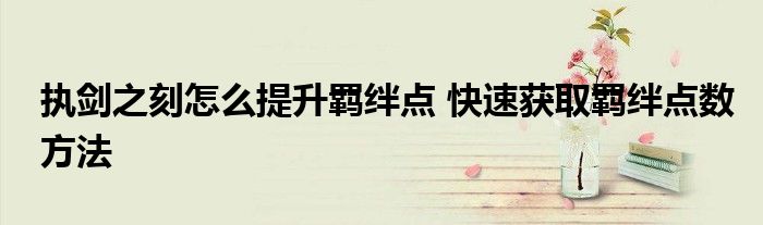 羈絆點數可以幫助執劍之刻的武士獲取到更多的好處,玩家對于點數的需求也非常的大,下面的獲取方法就來幫助大家快速的了解一下具體的途徑,快來看看吧。