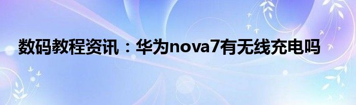 現(xiàn)在各種各樣的數(shù)碼設備在我們的生活當中幾乎可以說是無處不在,平時我們使用的手機,IP,電腦等等這些都屬于數(shù)碼設備,那么這些數(shù)碼設備當中會存在著很多的功能,當然在我們使用的過程當中自然也會出現(xiàn)說各種的問題,那么我們?nèi)绾尾拍苋ソ鉀Q這些問題以及使用好這些功能呢?這個時候就需要我們?nèi)チ私膺@些功能及問題的解決方法,今天小編就來給大家分享下,關于華為nova7有無線充電嗎方面的問題及功能的詳細內(nèi)容,希望下面小編為大家分享的內(nèi)容對大家來說有一定的幫助哦。華為nova7有無線充電嗎?