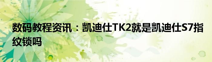 現在各種各樣的數碼設備在我們的生活當中幾乎可以說是無處不在,平時我們使用的手機,IP,電腦等等這些都屬于數碼設備,那么這些數碼設備當中會存在著很多的功能,當然在我們使用的過程當中自然也會出現說各種的問題,那么我們如何才能去解決這些問題以及使用好這些功能呢?這個時候就需要我們去了解這些功能及問題的解決方法,今天小編就來給大家分享下,關于凱迪仕TK2就是凱迪仕S7指紋鎖嗎方面的問題及功能的詳細內容,希望下面小編為大家分享的內容對大家來說有一定的幫助哦。凱迪仕TK2和S7的關系