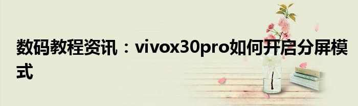 現在各種各樣的數碼設備在我們的生活當中幾乎可以說是無處不在,平時我們使用的手機,IP,電腦等等這些都屬于數碼設備,那么這些數碼設備當中會存在著很多的功能,當然在我們使用的過程當中自然也會出現說各種的問題,那么我們如何才能去解決這些問題以及使用好這些功能呢?這個時候就需要我們去了解這些功能及問題的解決方法,今天小編就來給大家分享下,關于vivox30pro如何開啟分屏模式方面的問題及功能的詳細內容,希望下面小編為大家分享的內容對大家來說有一定的幫助哦。vivox30pro如何開啟分屏模式?