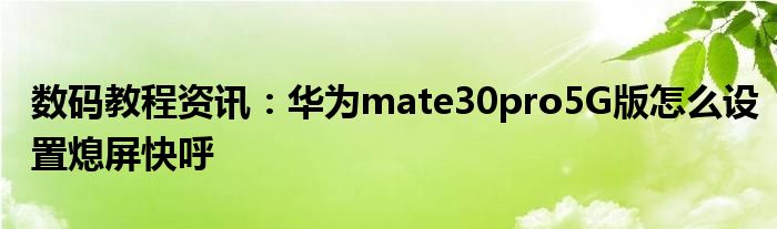 現在各種各樣的數碼設備在我們的生活當中幾乎可以說是無處不在,平時我們使用的手機,IP,電腦等等這些都屬于數碼設備,那么這些數碼設備當中會存在著很多的功能,當然在我們使用的過程當中自然也會出現說各種的問題,那么我們如何才能去解決這些問題以及使用好這些功能呢?這個時候就需要我們去了解這些功能及問題的解決方法,今天小編就來給大家分享下,關于華為mate30pro5G版怎么設置熄屏快呼方面的問題及功能的詳細內容,希望下面小編為大家分享的內容對大家來說有一定的幫助哦。華為mate30pro 5G版怎么設置熄屏快呼?