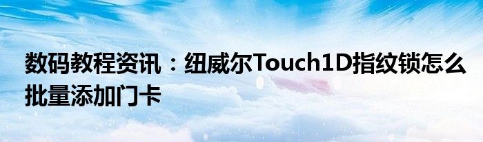 關于紐威爾Touch1D指紋鎖怎么批量添加門卡的全部內容。獲取更多智能鎖相關資訊盡在
