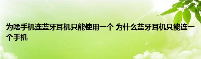 大家好,小琪來為大家解答以上問題。為啥手機連藍牙耳機只能使用一個,為什么藍牙耳機只能連一個手機這個很多人還不知道,現在讓我們一起來看看吧!