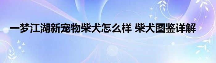 柴犬是這次新推出的寵物,非常可愛,大家都非常好奇一夢江湖新寵物柴犬怎么樣?下面就跟隨小編一起來看看柴犬圖鑒詳解吧。
