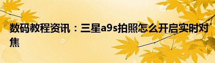 現在各種各樣的數碼設備在我們的生活當中幾乎可以說是無處不在,平時我們使用的手機,IP,電腦等等這些都屬于數碼設備,那么這些數碼設備當中會存在著很多的功能,當然在我們使用的過程當中自然也會出現說各種的問題,那么我們如何才能去解決這些問題以及使用好這些功能呢?這個時候就需要我們去了解這些功能及問題的解決方法,今天小編就來給大家分享下,關于三星a9s拍照怎么開啟實時對焦方面的問題及功能的詳細內容,希望下面小編為大家分享的內容對大家來說有一定的幫助哦。三星a9s拍照怎么開啟實時對焦