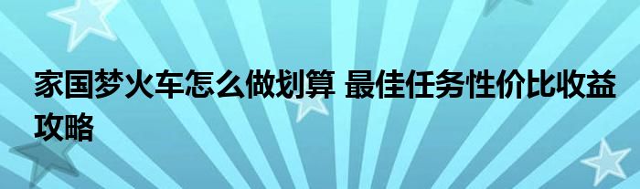 以上就是家國夢火車怎么做劃算的全部內容,不知道各位親愛的小伙伴是否掌握了呢?希望能提供些幫助!如果還有其他疑問,歡迎訪問當游網的相關文章。