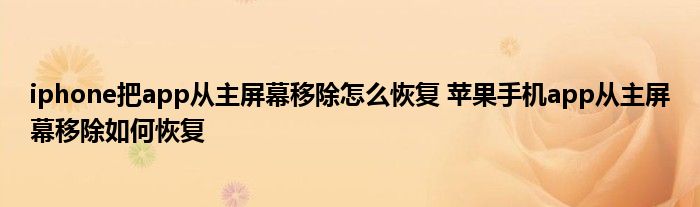 大家好,小琪來為大家解答以上問題。iphone把a(bǔ)pp從主屏幕移除怎么恢復(fù),蘋果手機(jī)app從主屏幕移除如何恢復(fù)這個很多人還不知道,現(xiàn)在讓我們一起來看看吧!