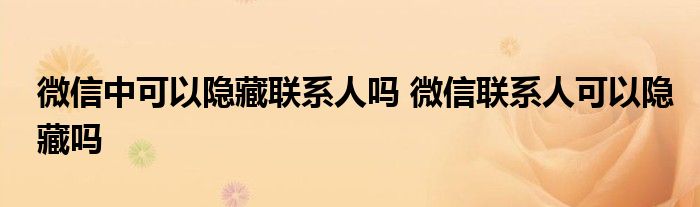 大家好,小琪來(lái)為大家解答以上問(wèn)題。微信中可以隱藏聯(lián)系人嗎,微信聯(lián)系人可以隱藏嗎這個(gè)很多人還不知道,現(xiàn)在讓我們一起來(lái)看看吧!