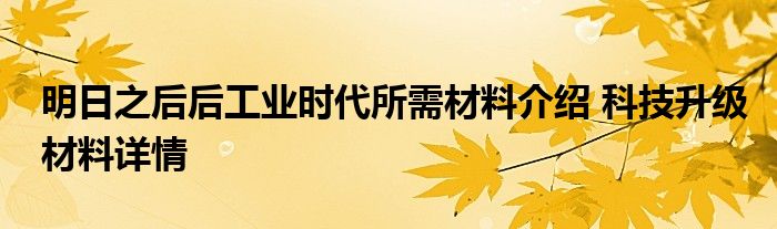 以上就是明日之后后工業(yè)時代所需材料介紹的內容,小伙伴們學會了嗎?希望對大家有所幫助,更多明日之后相關的攻略,請持續(xù)關注當游網。
