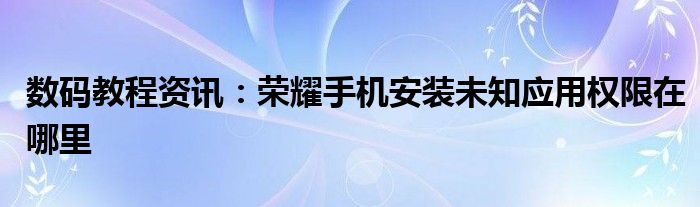 現(xiàn)在各種各樣的數(shù)碼設(shè)備在我們的生活當(dāng)中幾乎可以說(shuō)是無(wú)處不在,平時(shí)我們使用的手機(jī),IP,電腦等等這些都屬于數(shù)碼設(shè)備,那么這些數(shù)碼設(shè)備當(dāng)中會(huì)存在著很多的功能,當(dāng)然在我們使用的過(guò)程當(dāng)中自然也會(huì)出現(xiàn)說(shuō)各種的問(wèn)題,那么我們?nèi)绾尾拍苋ソ鉀Q這些問(wèn)題以及使用好這些功能呢?這個(gè)時(shí)候就需要我們?nèi)チ私膺@些功能及問(wèn)題的解決方法,今天小編就來(lái)給大家分享下,關(guān)于榮耀手機(jī)安裝未知應(yīng)用權(quán)限在哪里方面的問(wèn)題及功能的詳細(xì)內(nèi)容,希望下面小編為大家分享的內(nèi)容對(duì)大家來(lái)說(shuō)有一定的幫助哦。榮耀手機(jī)安裝未知應(yīng)用權(quán)限在哪里?