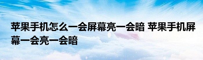 大家好,小琪來為大家解答以上問題。蘋果手機怎么一會屏幕亮一會暗,蘋果手機屏幕一會亮一會暗這個很多人還不知道,現在讓我們一起來看看吧!
