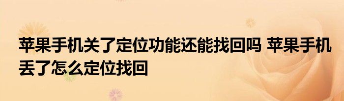 大家好,小琪來為大家解答以上問題。蘋果手機關了定位功能還能找回嗎,蘋果手機丟了怎么定位找回這個很多人還不知道,現在讓我們一起來看看吧!
