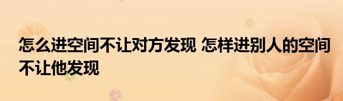 大家好,小琪來為大家解答以上問題。怎么進空間不讓對方發現,怎樣進別人的空間不讓他發現這個很多人還不知道,現在讓我們一起來看看吧!