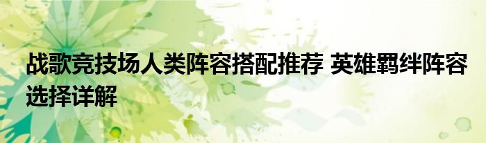 以上就是關于戰歌競技場英雄羈絆陣容選擇詳解,小伙伴們學會了嗎?希望以上攻略能給玩家們帶來一定的幫助,喜歡的玩家們千萬不要錯過哦!