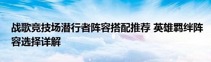 以上就是關于戰歌競技場英雄羈絆陣容選擇詳解,小伙伴們學會了嗎?希望以上攻略能給玩家們帶來一定的幫助,喜歡的玩家們千萬不要錯過哦!