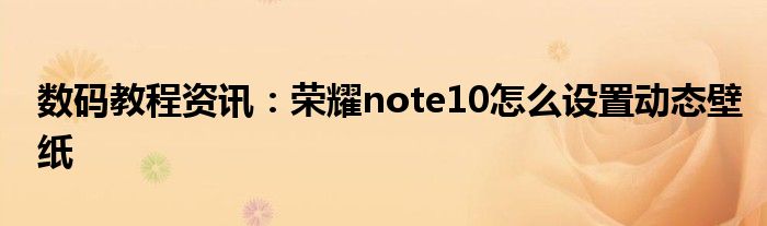 現(xiàn)在各種各樣的數(shù)碼設(shè)備在我們的生活當(dāng)中幾乎可以說(shuō)是無(wú)處不在,平時(shí)我們使用的手機(jī),IP,電腦等等這些都屬于數(shù)碼設(shè)備,那么這些數(shù)碼設(shè)備當(dāng)中會(huì)存在著很多的功能,當(dāng)然在我們使用的過(guò)程當(dāng)中自然也會(huì)出現(xiàn)說(shuō)各種的問(wèn)題,那么我們?nèi)绾尾拍苋ソ鉀Q這些問(wèn)題以及使用好這些功能呢?這個(gè)時(shí)候就需要我們?nèi)チ私膺@些功能及問(wèn)題的解決方法,今天小編就來(lái)給大家分享下,關(guān)于榮耀note10怎么設(shè)置動(dòng)態(tài)壁紙方面的問(wèn)題及功能的詳細(xì)內(nèi)容,希望下面小編為大家分享的內(nèi)容對(duì)大家來(lái)說(shuō)有一定的幫助哦。榮耀note10怎么設(shè)置動(dòng)態(tài)壁紙