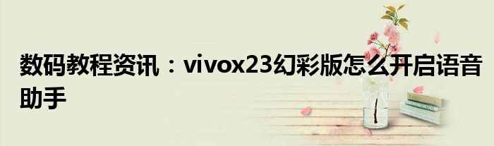 現(xiàn)在各種各樣的數碼設備在我們的生活當中幾乎可以說是無處不在,平時我們使用的手機,IP,電腦等等這些都屬于數碼設備,那么這些數碼設備當中會存在著很多的功能,當然在我們使用的過程當中自然也會出現(xiàn)說各種的問題,那么我們如何才能去解決這些問題以及使用好這些功能呢?這個時候就需要我們去了解這些功能及問題的解決方法,今天小編就來給大家分享下,關于vivox23幻彩版怎么開啟語音助手方面的問題及功能的詳細內容,希望下面小編為大家分享的內容對大家來說有一定的幫助哦。vivox23幻彩版怎么開啟語音助手