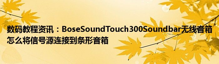 現(xiàn)在各種各樣的數(shù)碼設備在我們的生活當中幾乎可以說是無處不在,平時我們使用的手機,IP,電腦等等這些都屬于數(shù)碼設備,那么這些數(shù)碼設備當中會存在著很多的功能,當然在我們使用的過程當中自然也會出現(xiàn)說各種的問題,那么我們?nèi)绾尾拍苋ソ鉀Q這些問題以及使用好這些功能呢?這個時候就需要我們?nèi)チ私膺@些功能及問題的解決方法,今天小編就來給大家分享下,關于BoseSoundTouch300Soundbar無線音箱怎么將信號源連接到條形音箱方面的問題及功能的詳細內(nèi)容,希望下面小編為大家分享的內(nèi)容對大家來說有一定的幫助哦。Bose SoundTouch 300 Soundbar無線音箱怎么將信號源連接到條形音箱