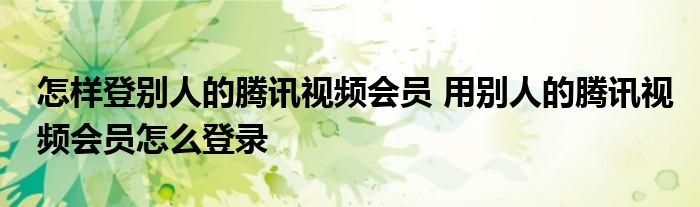 大家好,小琪來為大家解答以上問題。怎樣登別人的騰訊視頻會員,用別人的騰訊視頻會員怎么登錄這個很多人還不知道,現在讓我們一起來看看吧!