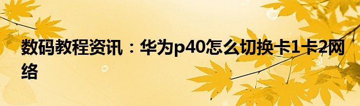 現在各種各樣的數碼設備在我們的生活當中幾乎可以說是無處不在,平時我們使用的手機,IP,電腦等等這些都屬于數碼設備,那么這些數碼設備當中會存在著很多的功能,當然在我們使用的過程當中自然也會出現說各種的問題,那么我們如何才能去解決這些問題以及使用好這些功能呢?這個時候就需要我們去了解這些功能及問題的解決方法,今天小編就來給大家分享下,關于華為p40怎么切換卡1卡2網絡方面的問題及功能的詳細內容,希望下面小編為大家分享的內容對大家來說有一定的幫助哦。華為p40怎么切換卡1卡2網絡?