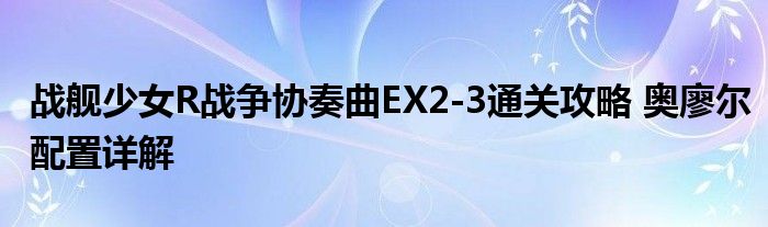 以上就是戰艦少女R戰爭協奏曲EX2-3通關攻略的內容,小伙伴們學會了嗎?希望對大家有所幫助,更多戰艦少女R相關的攻略,請持續關注當游網。