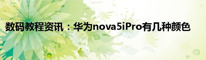 現(xiàn)在各種各樣的數(shù)碼設(shè)備在我們的生活當(dāng)中幾乎可以說是無處不在,平時我們使用的手機,IP,電腦等等這些都屬于數(shù)碼設(shè)備,那么這些數(shù)碼設(shè)備當(dāng)中會存在著很多的功能,當(dāng)然在我們使用的過程當(dāng)中自然也會出現(xiàn)說各種的問題,那么我們?nèi)绾尾拍苋ソ鉀Q這些問題以及使用好這些功能呢?這個時候就需要我們?nèi)チ私膺@些功能及問題的解決方法,今天小編就來給大家分享下,關(guān)于華為nova5iPro有幾種顏色方面的問題及功能的詳細(xì)內(nèi)容,希望下面小編為大家分享的內(nèi)容對大家來說有一定的幫助哦。華為nova5iPro有幾種顏色?